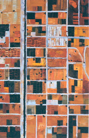 En “Desfragmento de la Línea Recta”, la línea recta —símbolo del dominio humano— se convierte en el eje central: carreteras, canales, campos de cultivo, geometrías cerradas que encorsetan el paisaje natural. Es la huella más repetida del hombre sobre el planeta, una forma de orden que impone límites, que corta y fragmenta.